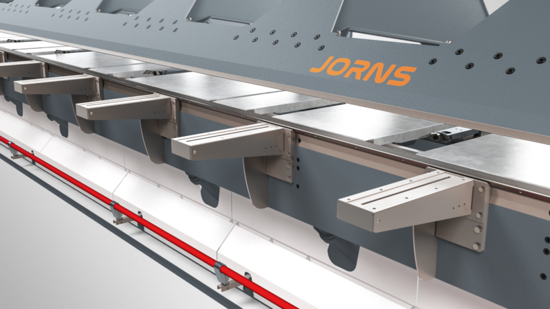 Um Blechstreifen, die eine grosse Zuschnittbreite aufweisen oder beim Biegeprozess weit aus der Maschine ragen, einfacher zu verarbeiten, kann die Maschine mit Supportarmen ausgestattet werden; sie können an der Biegewange montiert werden.